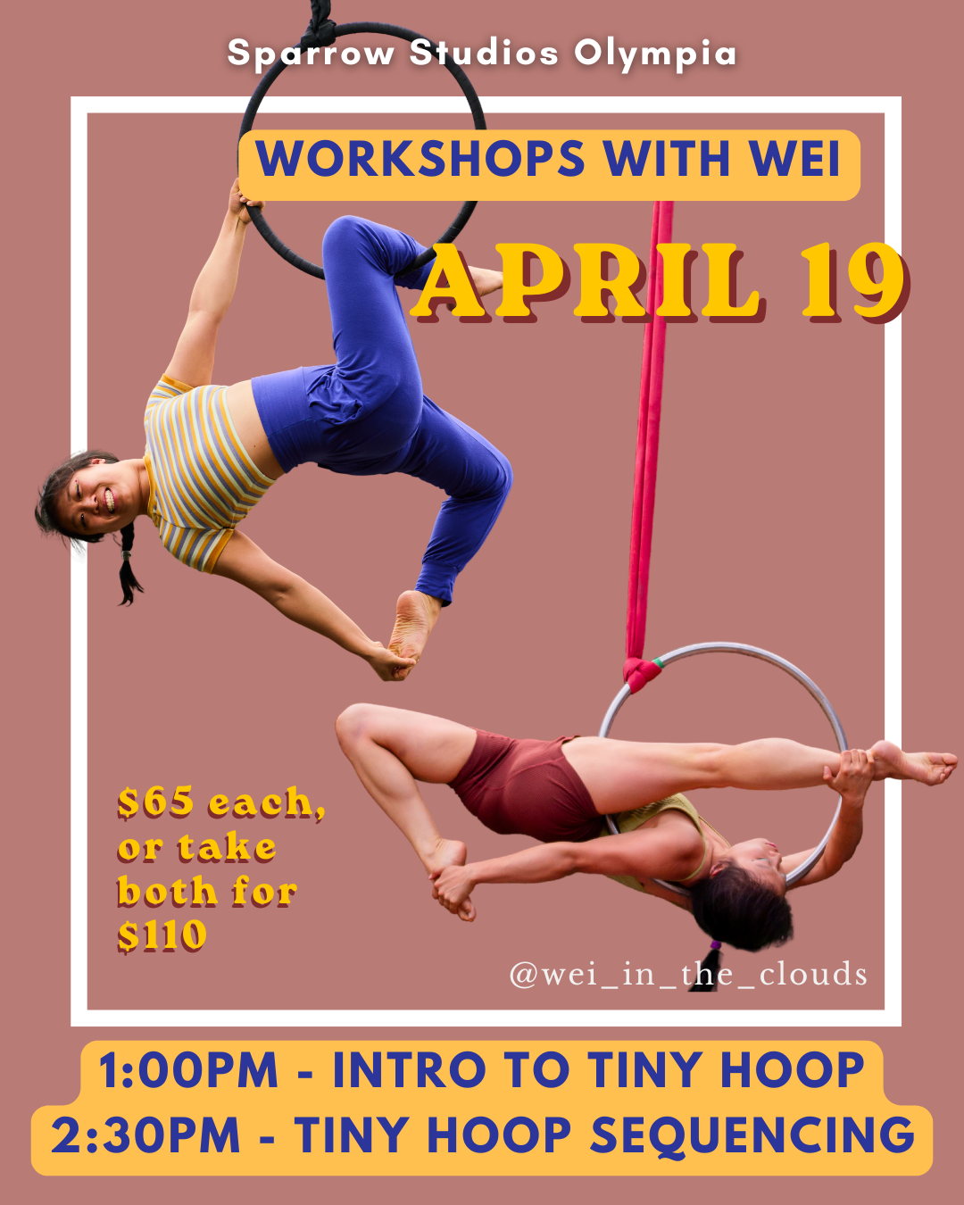 This youth-friendly workshop will explore the magic of tiny hoop. We will cover fundamental aerial skills and transitions that work above, below and within this adorable apparatus. Class will end with a fun choreography (spinning optional but highly encouraged!)