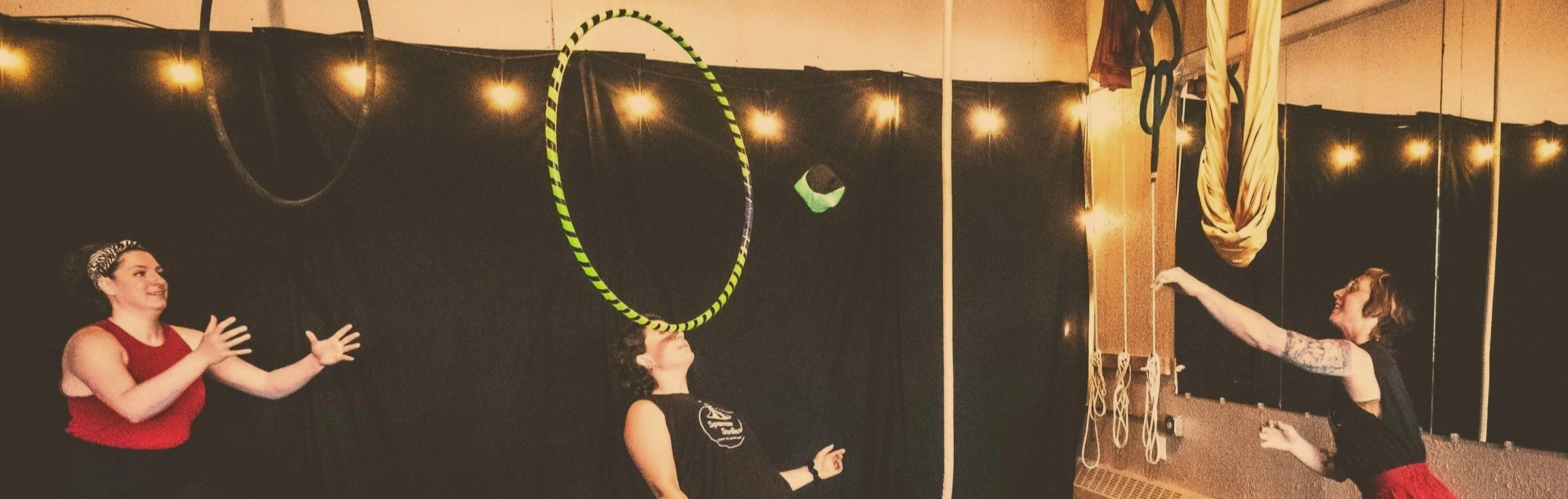 Handstands, flexibility, clown class, and juggle jam are offered nearly every session. Intro to Aerial, and the rest of the continuing beginner aerial series (CB1, CB2, CB3) are offered every session as well.